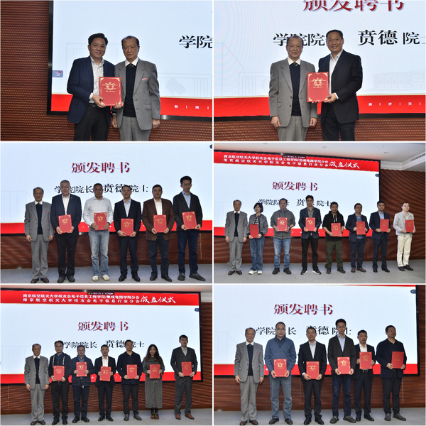 潘时龙详细介绍了学院情况与发展愿景,最后表达学院正乘风扬帆,以“三航”特色引领,争创一流学科、培养一流人才,打造电子信息领域的新高地,向建成具有空天特色的世界一流电子信息学院迈进。聂东林宣读了校友会名单,由贲德院士向学院校友分会代表颁发了聘书。