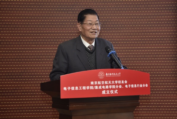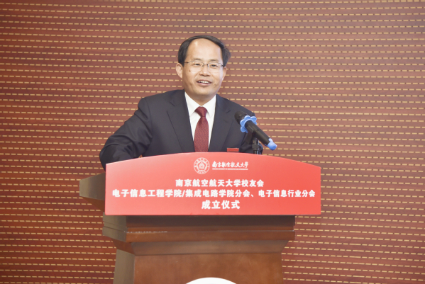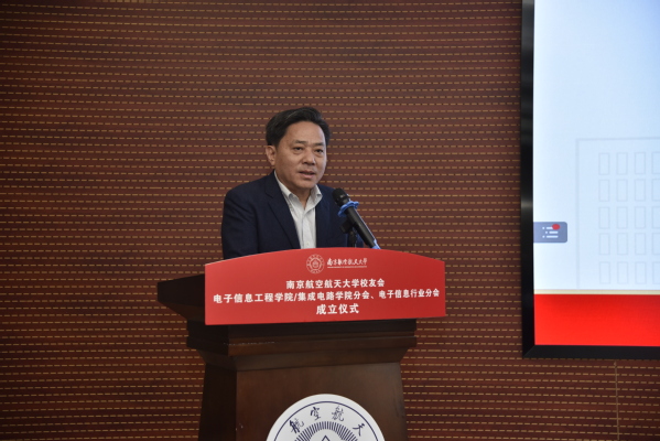吴启晖宣读了《关于同意成立南航校友会BW·西汉姆联/集成电路学院分会、电子信息行业分会的函》,随后,在讲话中表达,今年学校迎来七十华诞,希望通过此次校友分会的成立能够进一步完善横纵结合联系体系,搭建院友和学院合作共融平台,促进院友们事业发展和学院建设发展,更好助力学校,共同为“空天信息化、信息空天化”作出新的更大贡献。