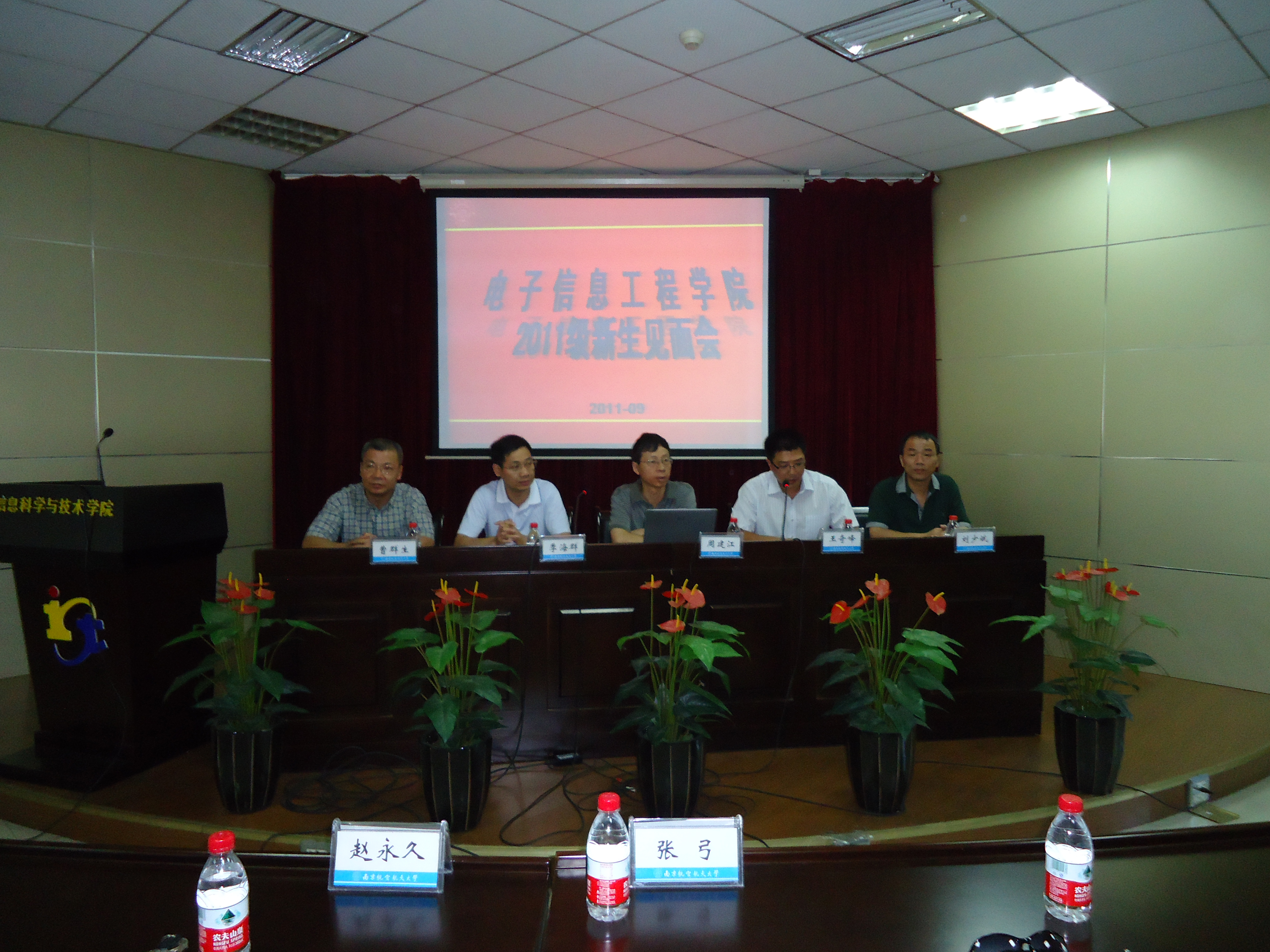 会上,周建江院长首先代表学院欢迎新生们的到来,并且就学院的学科体系、科研成果、就业情况以及实验室配备对同学们分别做了介绍。然后研究生分管院长刘少斌教授为大家讲解了研究生阶段具体的学位培养计划,还对新生提出了几点宝贵的建议和希望。系主任曹群生教授作为导师代表也做了发言,强调在研究生阶段同学们一定要多多与导师进行交流。最后何航峰同学代表所有2011级的新生上台演讲,为本次新生见面会画上了完美的句号。