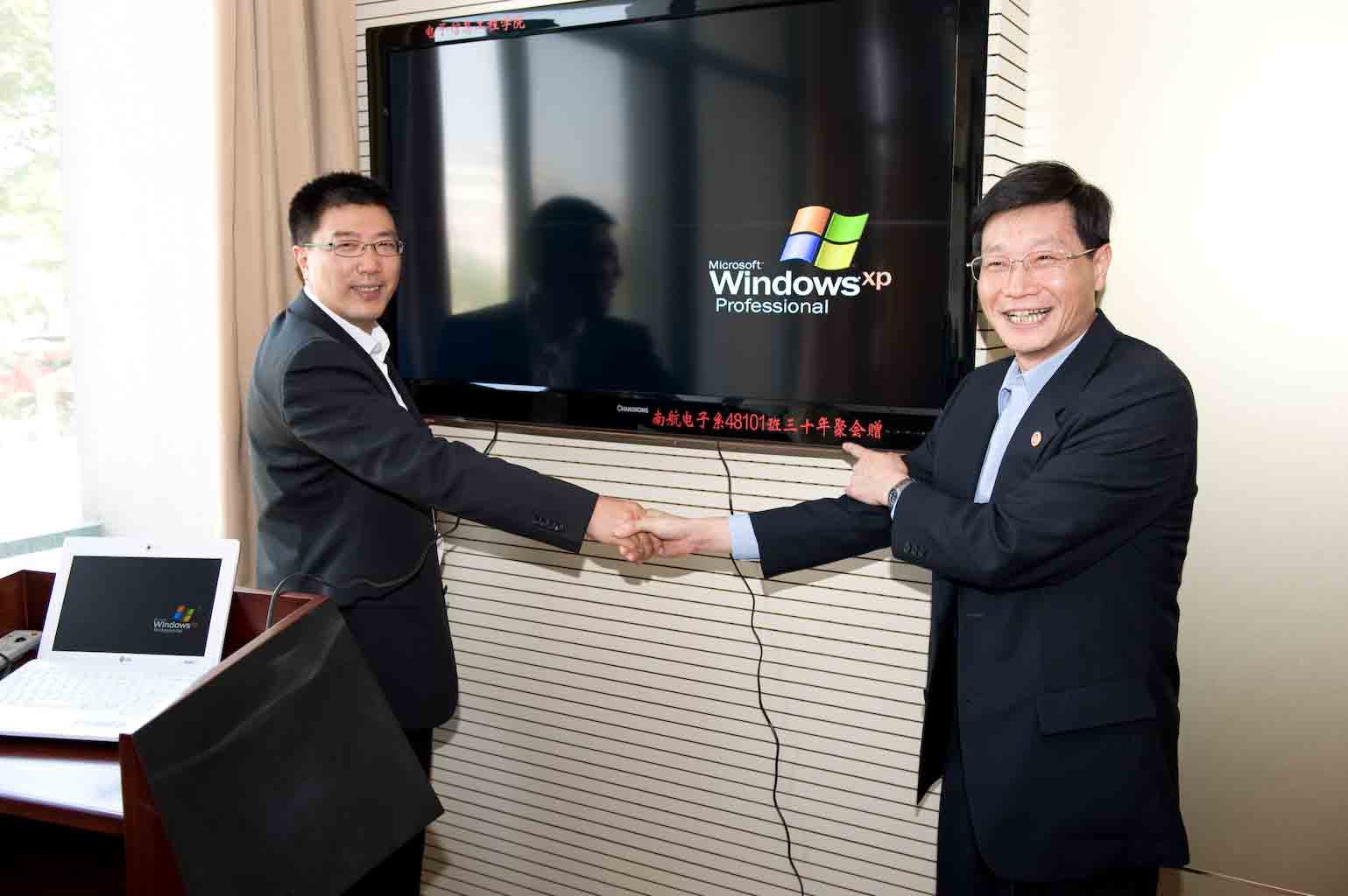 欢迎仪式的最后,为感谢母校的辛勤培育,48101班集体向学院赠送了礼品。仪式结束后,学院领导和老师与校友们合影并参观了明故宫校区和将军路校区。