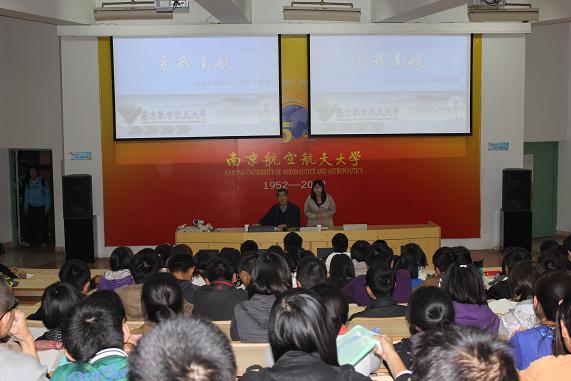 晚上6:30,在2111教室,丁荣茂老师向同学们展示了建校59年来南航所取得的各种骄人的成就,并从“南航发展与传统文化”、“大学文化与大学精神”和“发扬南航传统,创新南航文化”等三个方面进行了热情洋溢的解说。丁书记对学生们寄予了深切的期望,希望学生们铭记南航光辉的历史,立足于挑战与机遇并存的现在,展望美好的未来,以学校的期望和劝勉为动力,以发扬南航大学精神为己任,立大志,做大事,为母校南航美好的明天不懈奋斗。