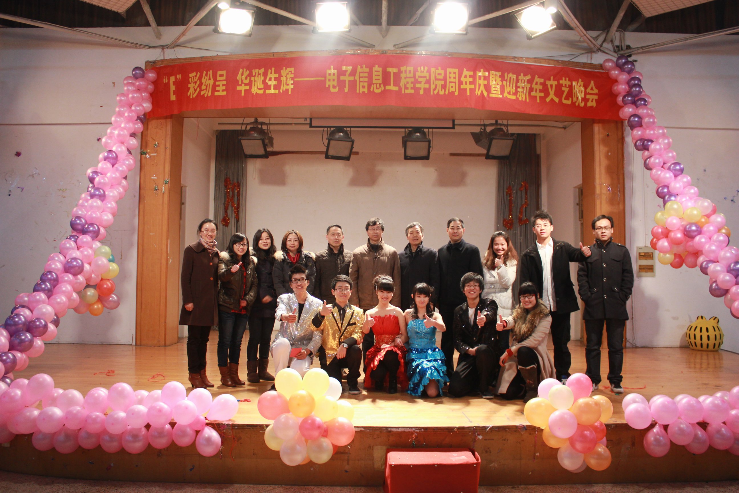 2011年12月29日晚七点,BW·西汉姆联 “E彩纷呈,华诞生辉”周年庆暨迎新年文艺晚会在将军路校区大学生活动中心隆重举行。学院常务副院长周建江,副院长赵永久、张弓,党委副书记季海群,班主任代表张颖、葛芬,教学办主任谈静艳,团委书记张晓燕以及全体辅导员老师,与400余名同学共同参加了本次晚会。