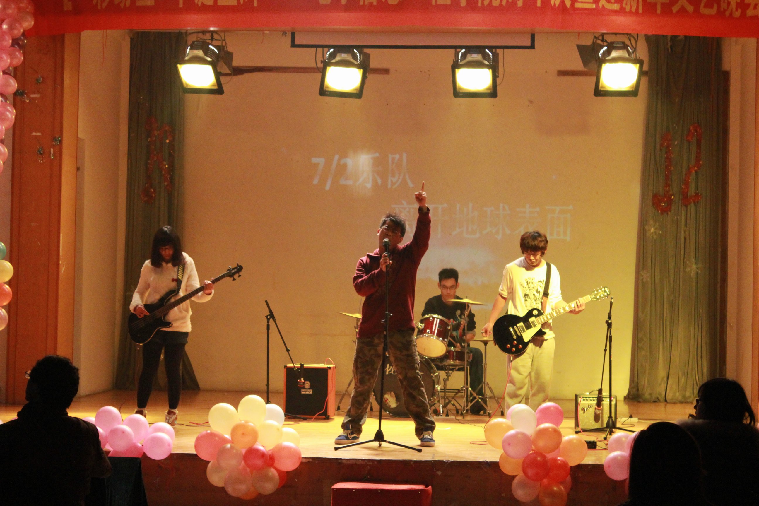 晚会在7/2乐队的歌声中拉开帷幕,《离开地球表面》的旋律激情澎湃。五位主持人组成强大的主持阵容,风趣幽默,激扬大方,充分调动了现场观众的积极性。紧接着是充满阳刚之气的双截棍表演,令人捧腹的小品《穿越》,以及热辣的肚皮舞表演,优美动听的歌曲《新贵妃醉酒》,精彩的舞蹈大比拼,学院“唯舞独尊”舞蹈队的姑娘们大秀舞姿,男生们则秀出了他们扎实的街舞功底。游戏环节中,张晓燕老师热情献唱,一首《甜蜜蜜》在掀起阵阵掌声,观众反应热烈。话剧表演《毕业两年后》将气氛带入高潮,晚会文艺表演以十佳歌手白金奖得主周文柏的一曲《暗香》结束,现场欢声不断。