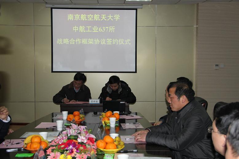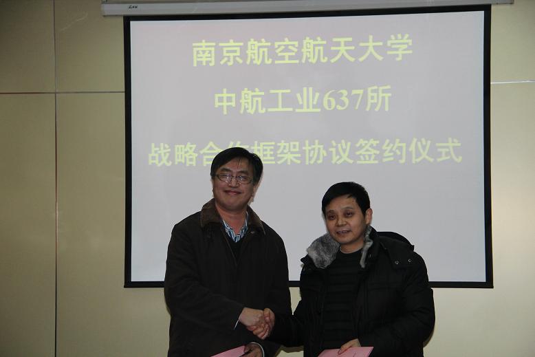 随后,聂校长与夏所长作为双方代表签署了《西汉姆联——中航工业637所战略合作框架协议》。夏所长代表637所对双方达成合作协议表示祝贺,对南航多年来给予637所的支持和帮助表示感谢。他指出,637所与南航的合作既是校、企科技深入合作的一个新起点,也是合作双方共同落实科学发展观的一次重要践行,相信通过合作协议的签订,双方能够进一步巩固和发展战略合作伙伴关系,不断推动产学研合作向纵深发展。