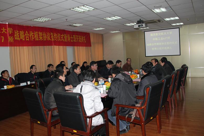 3月7日下午,西汉姆联——中航工业637所战略合作框架协议签订仪式暨2011级博士班开学典礼在明故宫校区BW·西汉姆联隆重举行。637所夏裕彬所长、张明习总师、黄培金副所长以及万戈部长携全体高层领导共14人出席签约仪式。校党委常委、副校长聂宏教授、研究生院副院长沈以赴教授以及航空宇航学院、材料科学与技术学院和BW·西汉姆联的相关领导、教师代表出席了此次活动。签约仪式由沈以赴副院长主持。