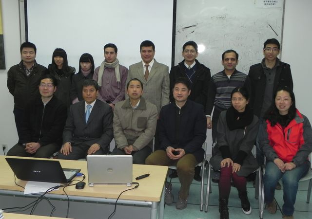 答辩决议宣读完毕,总领事先生首先祝贺所有中外学生顺利通过答辩并与学生们亲切交谈,特别询问了3名厄瓜多尔留学生在南航求学和生活的经历,对他们受中国电子科技集团(CETC)和厄瓜多尔空军的资助在南航学习所取得的成绩表示肯定。留学生表示两年半的学习和生活是一段非常宝贵且极其有趣的人生经历,令人回味。总领事先生对南航特别是信息工程专业培养留学生所表现出的敬业精神和专业素养印象深刻,非常乐意推荐更多厄瓜多尔和南美学生来南航各专业攻读各级学位。同时Jorge Hidalgo先生非常高兴地告诉大家由于南航的大力协助南美赤道国家厄瓜多尔与中国不久将开通跨越太平洋的直达航班,届时两国将有更紧密的合作。最后总领事先生与8位中外学生和答辩委员及导师合影留念。