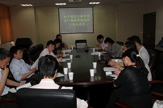 张弓副院长首先介绍了学院组织学生参赛的基本情况,包括选题、研究进展等。张迎春书记详细介绍了学校备战挑战杯的总体安排和电子信息类项目的参赛情况。她说,我校在近六届的挑战杯大学生课外科技学术作品大赛中取得了骄人的成绩,在全国高校处于领先的位置,这得益于学生们的大胆创新和刻苦钻研,更得益于学院、老师们的大力支持。希望在备战明年的比赛过程中,电子信息类作品作为参赛作品中比重较大的一个类别,可以取得更好的成绩。随后,指导教师代表分别介绍了目前学生们的作品选题和进展情况。