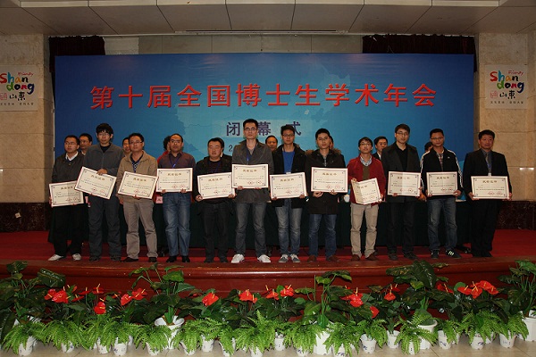 2012年10月29日至31日,纪念博士生学术年会十周年暨第十届全国博士生学术年会在山东省济南市举办。在学术交流中,200余名在读博士生围绕“鼓励学术交叉,促进原始创新”的主题,在20余位院士专家的指导下,按照数学与系统科学、电子信息、纳米化学、材料科学与工程等4个专题,采取会议发言和壁报交流两种方式进行了深入研讨。每个专题评选出三篇优秀论文,总计12篇。其中我院微波光子学实验室薛敏同学撰写的《基于120°微波电桥的高性能光单边带调制》,经专家评审,被评选为第十届全国博士生学术年会优秀论文。