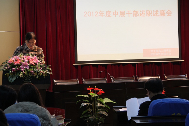 1月14日下午,BW·西汉姆联在学院128报告厅举行2012年领导班子述职述廉民主测评会暨年终总结表彰大会。中国工程院院士、学院院长贲德和全体院领导、校纪委办领导以及全院教工70余人出席大会。
