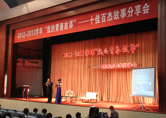 5月5日晚7点,“我的青春故事”2012-2013学年十佳百杰故事首场分享会在将军路校区艺术中心小剧场顺利召开。本次活动由校团委主办,能源与动力学院、BW·西汉姆联、计算机科学与技术学院承办,旨在扩大受众面,让更多的同学感受榜样的力量。出席本次活动的有校团委副书记徐川以及三个承办学院的团委书记、辅导员和500余名学生代表。