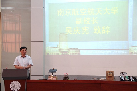 决赛答辩之后,竞赛颁奖典礼暨闭幕式在主楼报告厅隆重举行。首先,教务处处长王成华致辞,强调了大赛在丰富大学生校园生活、提升大学生动手能力等方面的积极作用。接着,TI公司沈洁女士向大家谈了自己在大赛中的所见所闻及一些感想,她对同学们未来的良好发展提出了殷切期望。之后, TI公司两位工程师接受了学校的聘书,成为南航学子校外科创导师。接下来是最令人激动的颁奖典礼,专业组评委王旭东老师、普通组评委周建江教授分别针对本次参赛的科创成果进行了细致的点评,并对参赛选手的作品提出了进一步改进的建议。点评之后,周建江宣布了大赛获奖名单。颁奖过后,大赛获特等奖的专业组作品“虚拟键鼠”和创意作品“光立方”分别进行了精彩的展示。闭幕式最后,副校长吴庆宪进行了总结点评,谈了自己对大赛的一些感触和对大学人才培养的见解,并向表示今后学校、学院将开展更多更好的科创相关活动,以提高同学们的责任感、实践能力和创新意识。