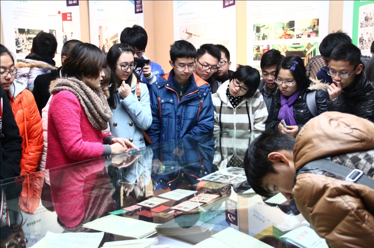 接着同学们参观了校史馆和航空航天馆,大家跟着讲解员听校史十分认真,同学们在老校门的模型前面留影,也在校史馆中找到了丰富的科技成就,并就自己感兴趣的问题请讲解员做更详细的介绍;在航空航天馆里,同学们一进入就被陈列的飞行器吸引,纷纷举起相机与之留影。随着讲解员的详细介绍,同学们从看花样到看门道,明白了我校在航空航天方面的实力,兴趣更加浓厚,同学们和讲解员交谈,请教着关于展品的各种问题。