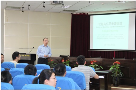 会上,包伯成教授回顾作为2008年度十大科技突破之一的忆阻器的发展历程,并探讨了忆阻与忆阻器的研究进展与未来发展方向。包伯成教授在报告首先介绍了忆阻器与忆阻电路等的基本概念和相关背景;然后重点阐述了忆阻元件的数学理论模型、本质特征、忆阻等效电路、忆阻混沌电路及其复杂的动力学行为等;最后,包伯成教授提议要创建紧密型合作,实现成果最大化。