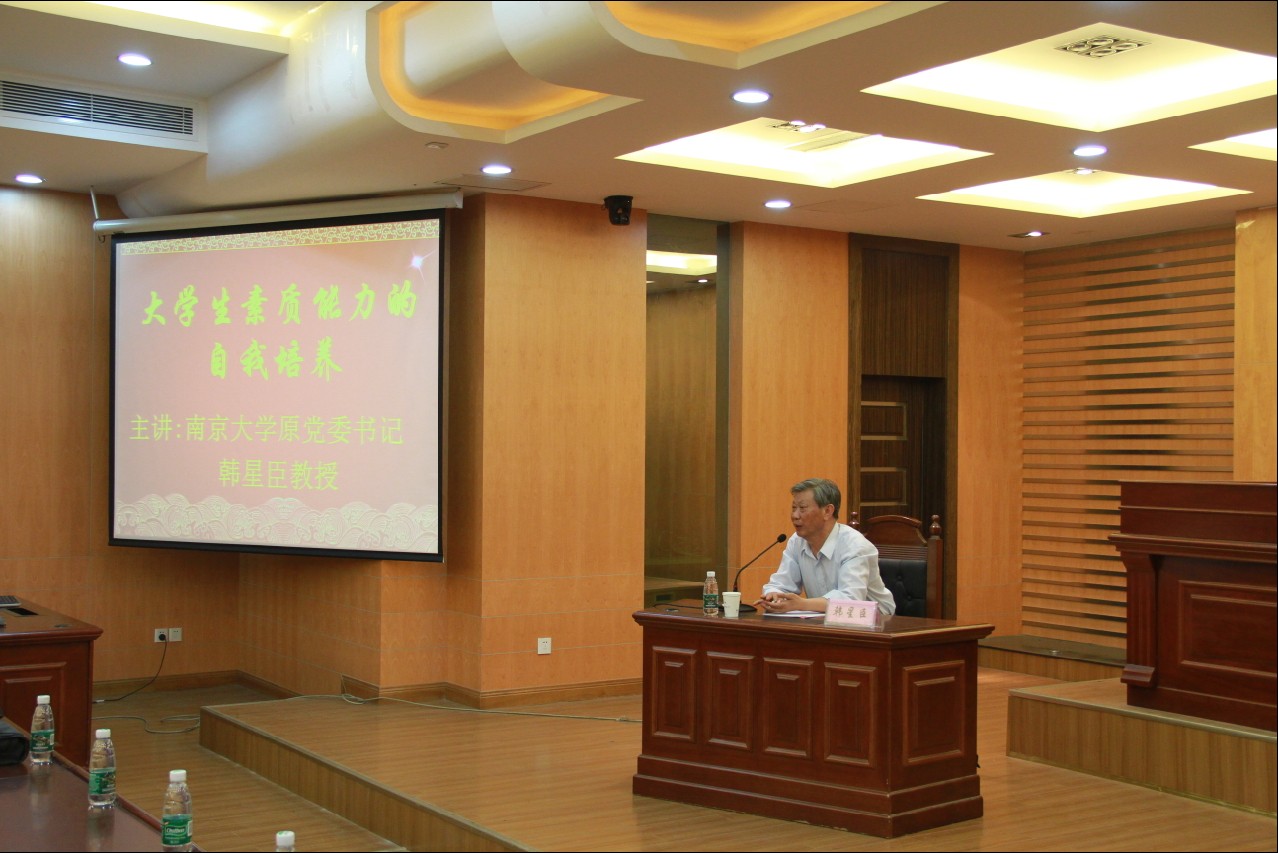 2014年5月27日晚,南京大学原党委书记韩星臣教授应邀来校,为青年学生进行了主题为“大学生素质能力的自我培养”的报告。本次名家讲坛由学生处主办,BW·西汉姆联承办,我院200余名各专业学生聆听了讲座。