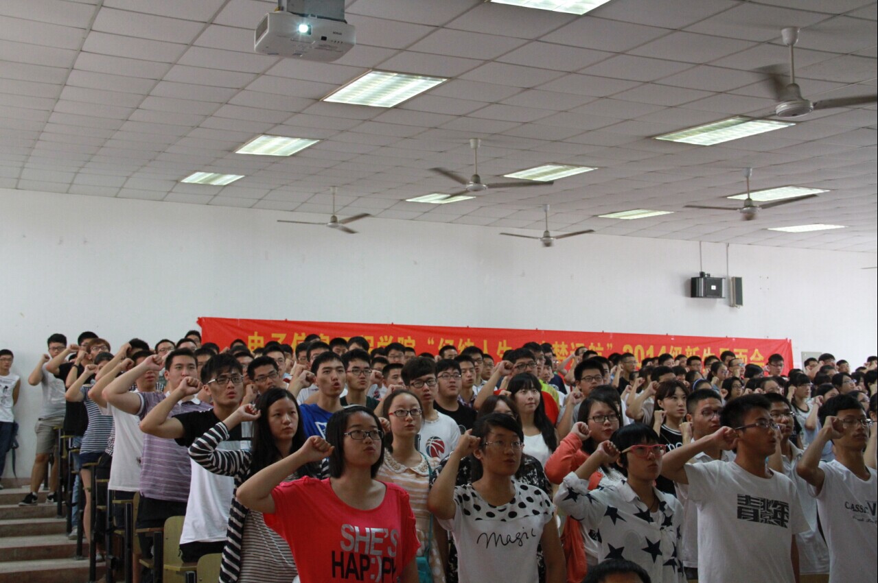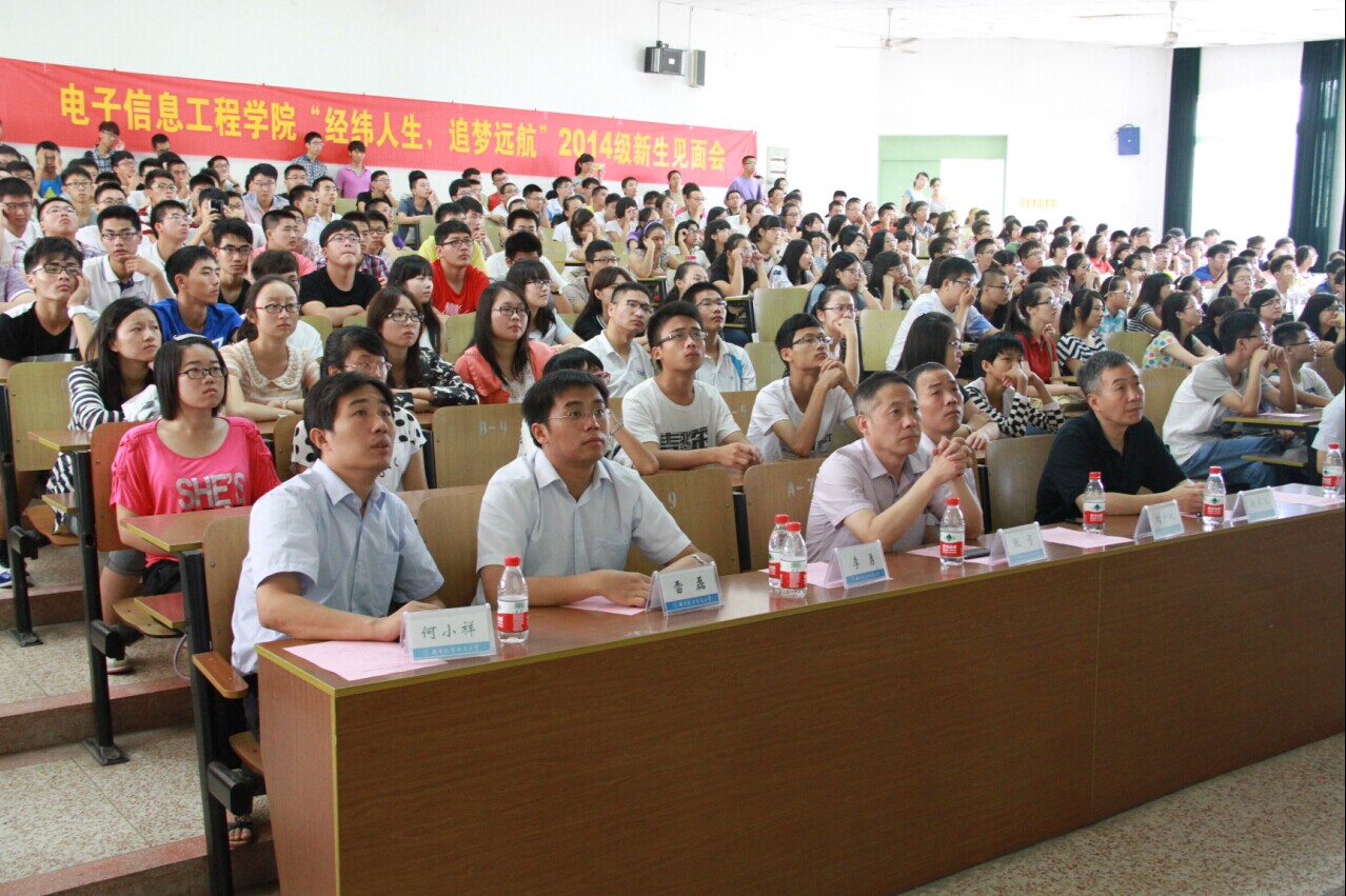 在激情洋溢的校歌声中,迎新见面会拉开帷幕。本次新生见面会分为六个环节。首先,由学院党委书记冯绍红为新生致词,同学们深切感受到学院领导对新生的关照与厚望;接下来,常务副院长周建江介绍必威概况,在周院长的介绍中,新生们初步了解了电子信息学科的特点,认识到电子信息对国民经济建设和国防建设的重要作用;第三环节由赵永久副院长详细介绍了学院四个专业的师资情况、研究范围、就业前景等,使同学们更加明晰未来的方向。