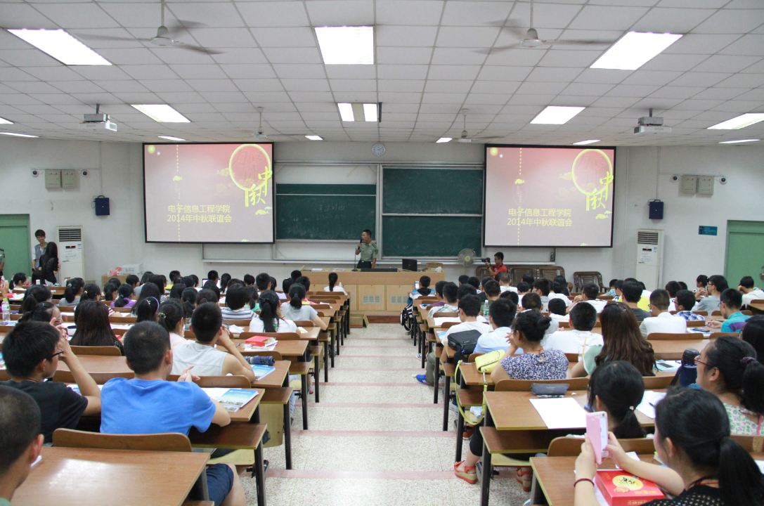 2014年9月8日下午,我院在4101教室举办了2014新生中秋联谊会。学院新生辅导员冷阳和7位军训教官陪着2014级326名新生共同度过了一个难忘的美好下午时光。