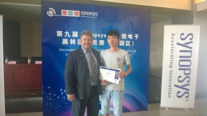 我院微电子科学与工程专业本科生毛强强同学通过赛前的积极准备和主动学习,在众多研究生参赛对手中脱颖而出,荣获比赛三等奖,并和Synopsys全球战略与市场副总裁、竞赛全球组委会主席Rich Goldman先生合影留念。毛强强同学也是我校首名在微电子比赛上获得奖项的学生。