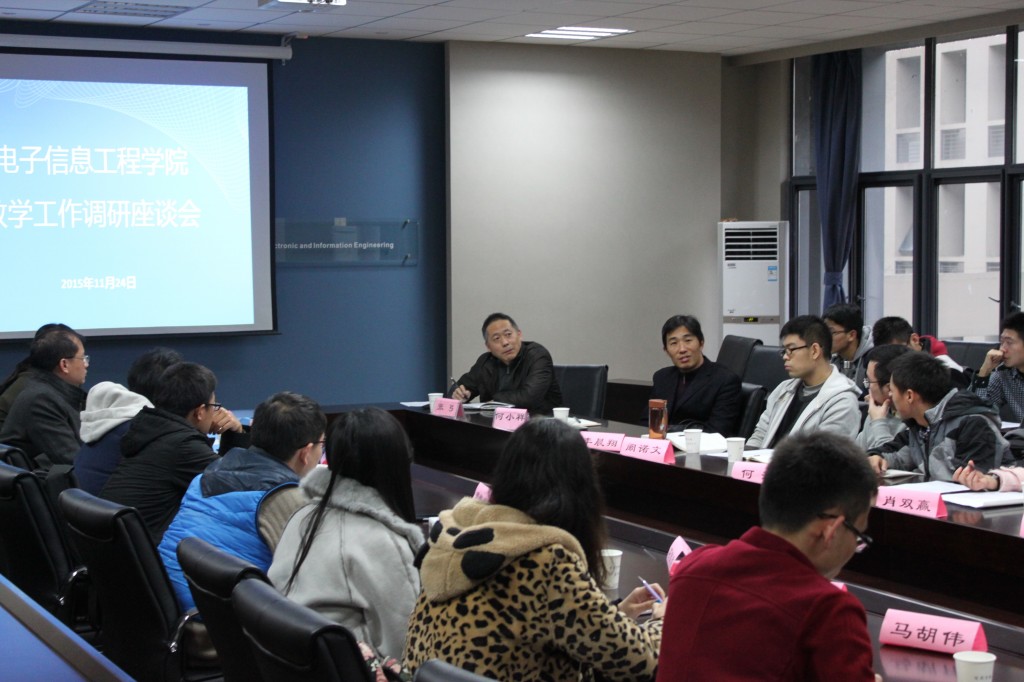 2015年11月24日14点,我院西汉姆联调研座谈会在学院楼209召开。学院教学副院长张弓教授、负责西汉姆联的院长助理何小祥教授、通信工程系副系主任夏伟杰教授、学院本科教学秘书张璐、本科生辅导员周贞琪与0413201、0413202班全体同学共同探讨学院在本科西汉姆联中存在的问题,并就如何改进西汉姆联中的不足之处进行深入的交流。老师与同学们互通心声,不仅有利于提高西汉姆联效率,改进教学方法,更能加深师生间的联系,增进师生间的相互理解。
