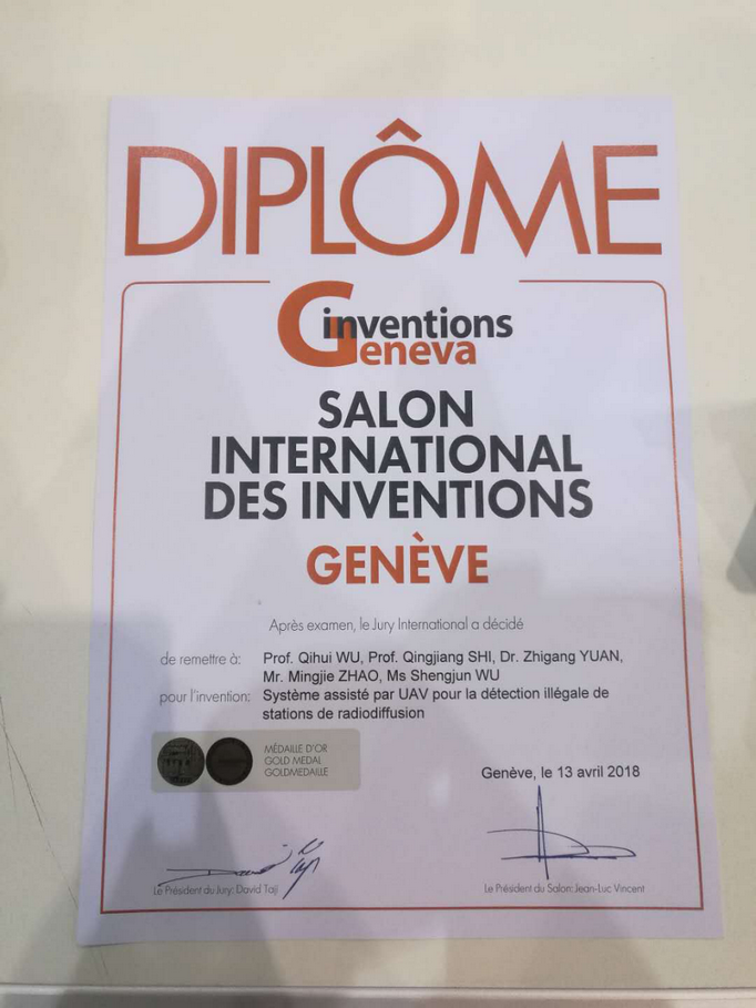 第46届日内瓦国际发明展于2018年4月11日至4月15日在瑞士日内瓦Palexpo会展中心举行,由我校BW·西汉姆联参展的“UAV-Assisted System for Illegal Broadcasting Station Detection(基于无人机平台的非法广播电台搜索定位系统)”斩获金奖。该成果由长江学者吴启晖教授、史清江教授、袁志刚与黄洋副教授、戚楠讲师带领赵明杰、吴盛君、管鑫硕士、胡田钰本科生等人共同完成。