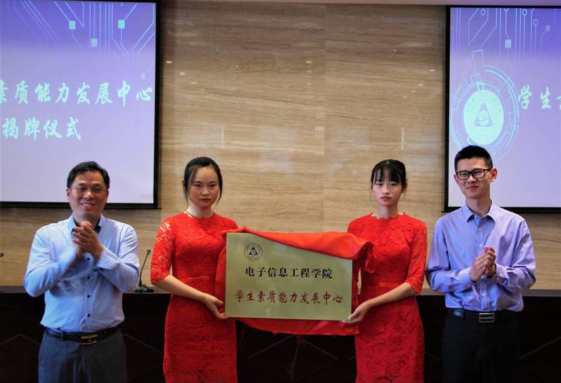 最后,由学院党委书记聂东林老师、校团委副书记董羽老师为“学生素质能力发展中心“揭牌,这标志着我院学生素质能力培养工作又迈上了新的台阶。
