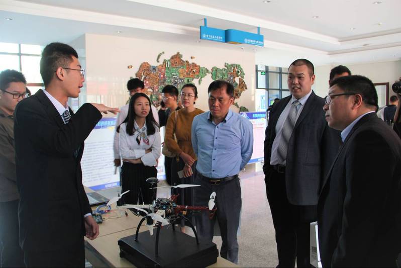 开幕式结束后,各位嘉宾与大一新生们移步一楼大厅,兴致勃勃地参观我院举办的科创成果展。液体天线、无人机智能频谱监测仪、智能视力仪等一批极具特色的项目、作品吸引了各位来宾的目光。来宾们与在场的优秀科创代表亲切交流,详细询问各个项目的研发和应用情况,并与学生们合影留念。