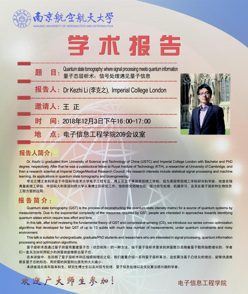 学术报告会——量子态层析术:信号处理遇见量子信息