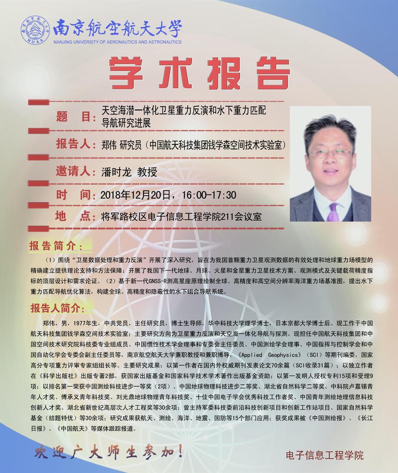 学术报告会——天空海潜一体化卫星重力反演和水下重力匹配导弹研究进展