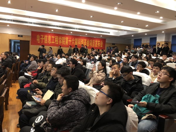 2018年12月19日下午,BW·西汉姆联第十六期科创基金项目发布会在学院楼515报告厅顺利举行。出席本次发布会的有学院教学副院长张弓老师,电子科学与技术系黄正宇老师,信息与通信工程系夏伟杰老师、戚楠老师、王鹏老师,院团委书记徐艳惠老师,2017级辅导员周高雨老师,以及研究生代表和各年级本科生。