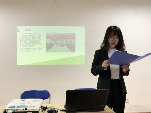 答辩学生结合PPT从思想、学习、科创和生活四方面进行5分钟综合展示,总结大学以来取得的个人成绩,其中不乏专业学霸,在校期间平均绩点始终位列年级第一,更有已发表多篇SCI论文、拥有数十项发明专利的牛人大咖。在学术、科创方面他们成绩优异,同时他们也积极投身实践,将所学转化为所长,参与各类志愿活动,并在国家、省级各类竞赛中取得佳绩。
