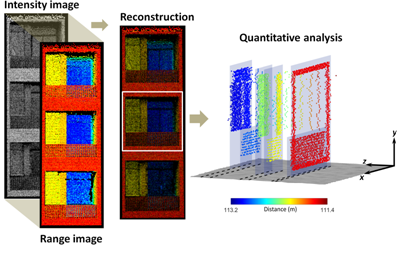 研究针对超分辨率激光遥感成像中面临的探测器集成工艺瓶颈难题,通过融合光学、通信等跨学科领域技术,首次设计并建立了一种基于码分亚像素的激光超分辨率成像技术体系。区别于单像素成像将传感器负担完全转嫁于单通道的光调制与重建算法上,该技术体系模拟码分多址技术思想设计光学,高效耦合调制发射单元与传感接收阵列,完成目标像素的大规模亚像素化并建立多路亚像素群调制复用的光信息传输链路,最终可实现低复杂度、高效率、超分辨率的三维成像。该技术所形成的样机采用小规模传感阵列在现场实验中获得了高分辨率、高精度的三维成像效果,结合超大规模焦平面阵列将实现阵列激光遥感成像的性能飞跃。