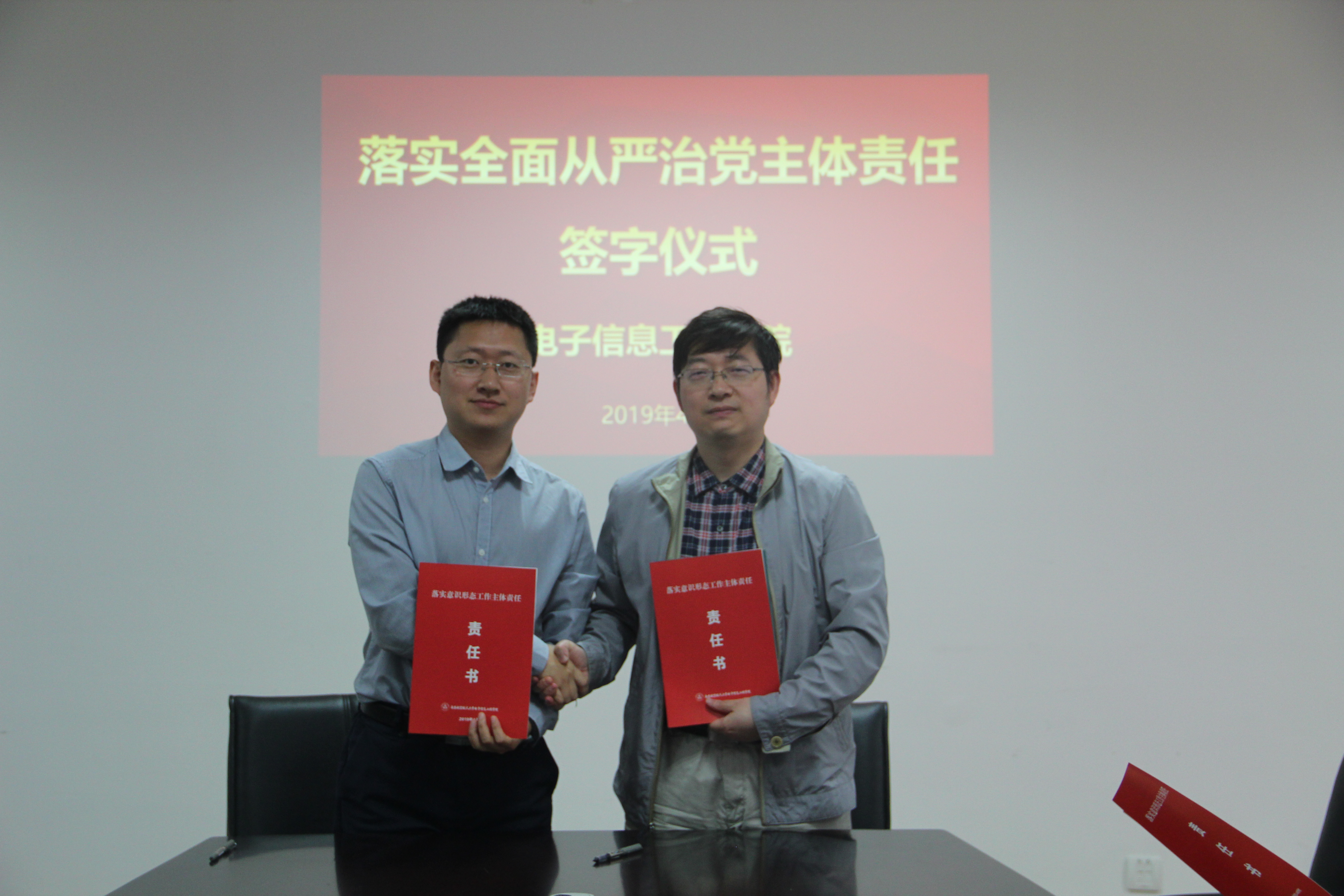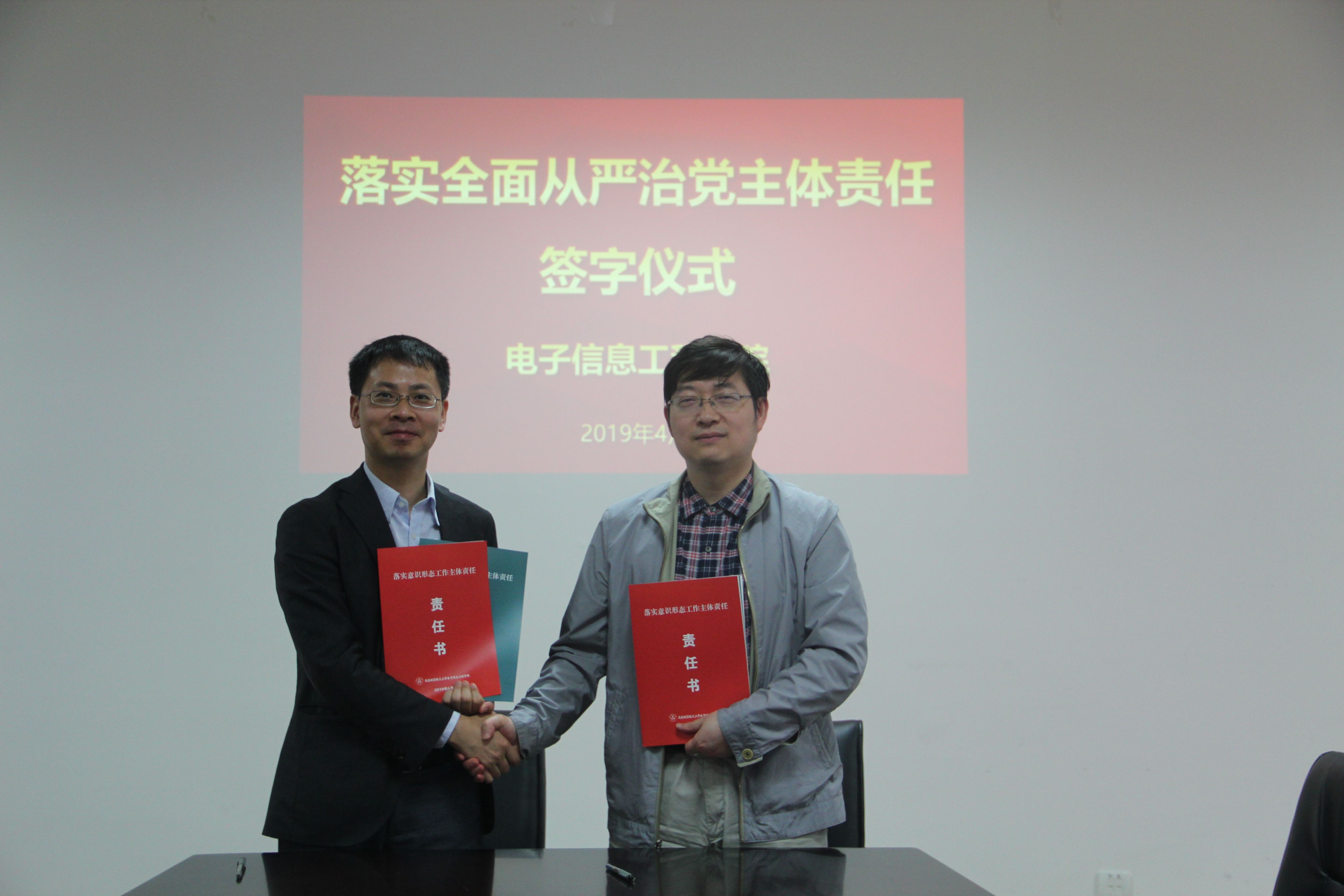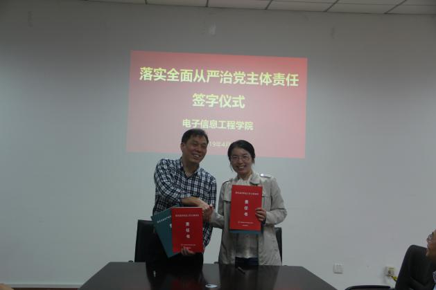 中心组学习会结束后,举行了落实全面从严治党主体责任责任书签订仪式。聂东林强调了新时期落实全面从严治党工作的重要意义,并对责任书的内容和要求作了说明。接着,学院党政领导班子分别与各自责任对象签订了工作责任书。