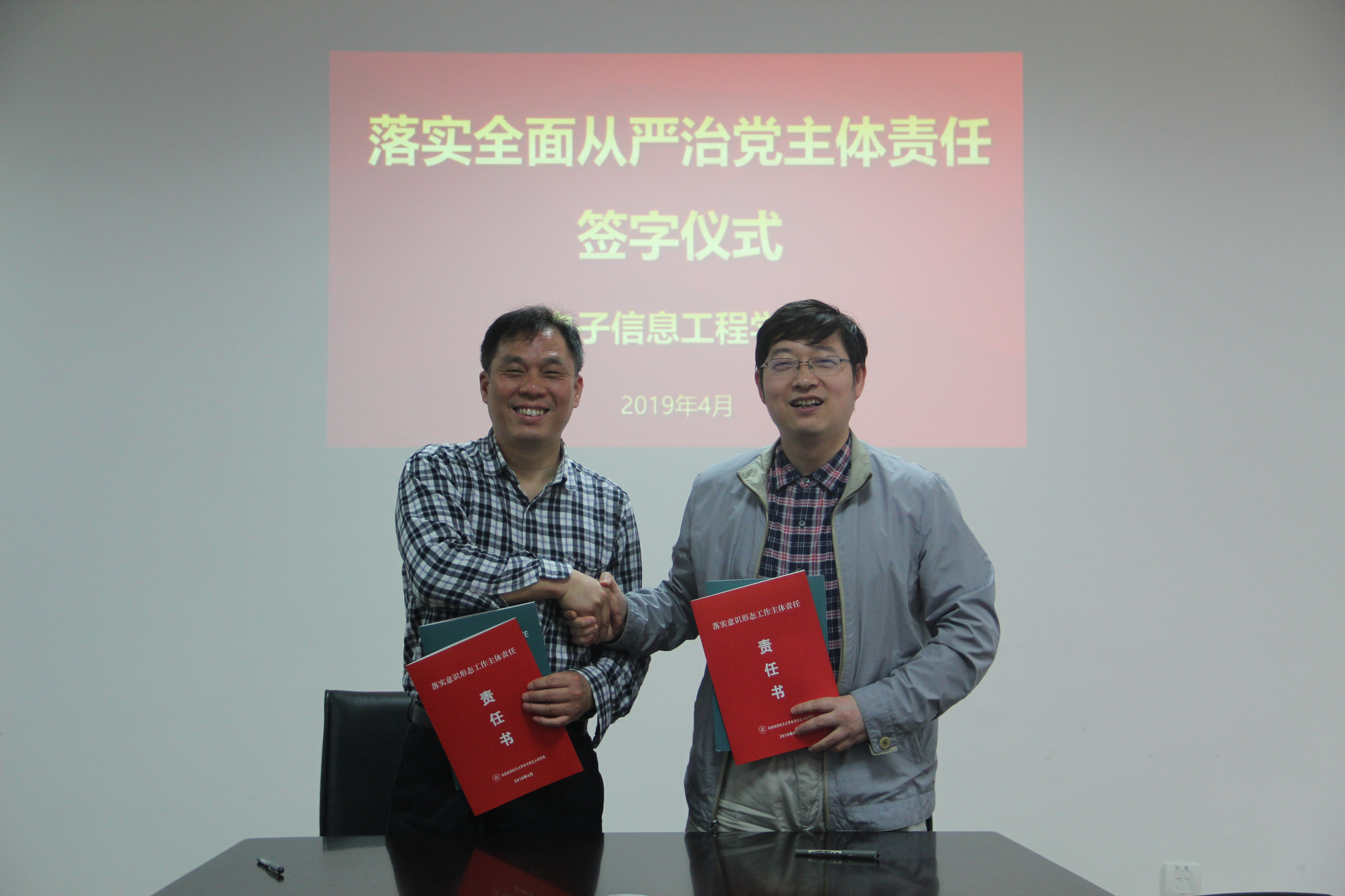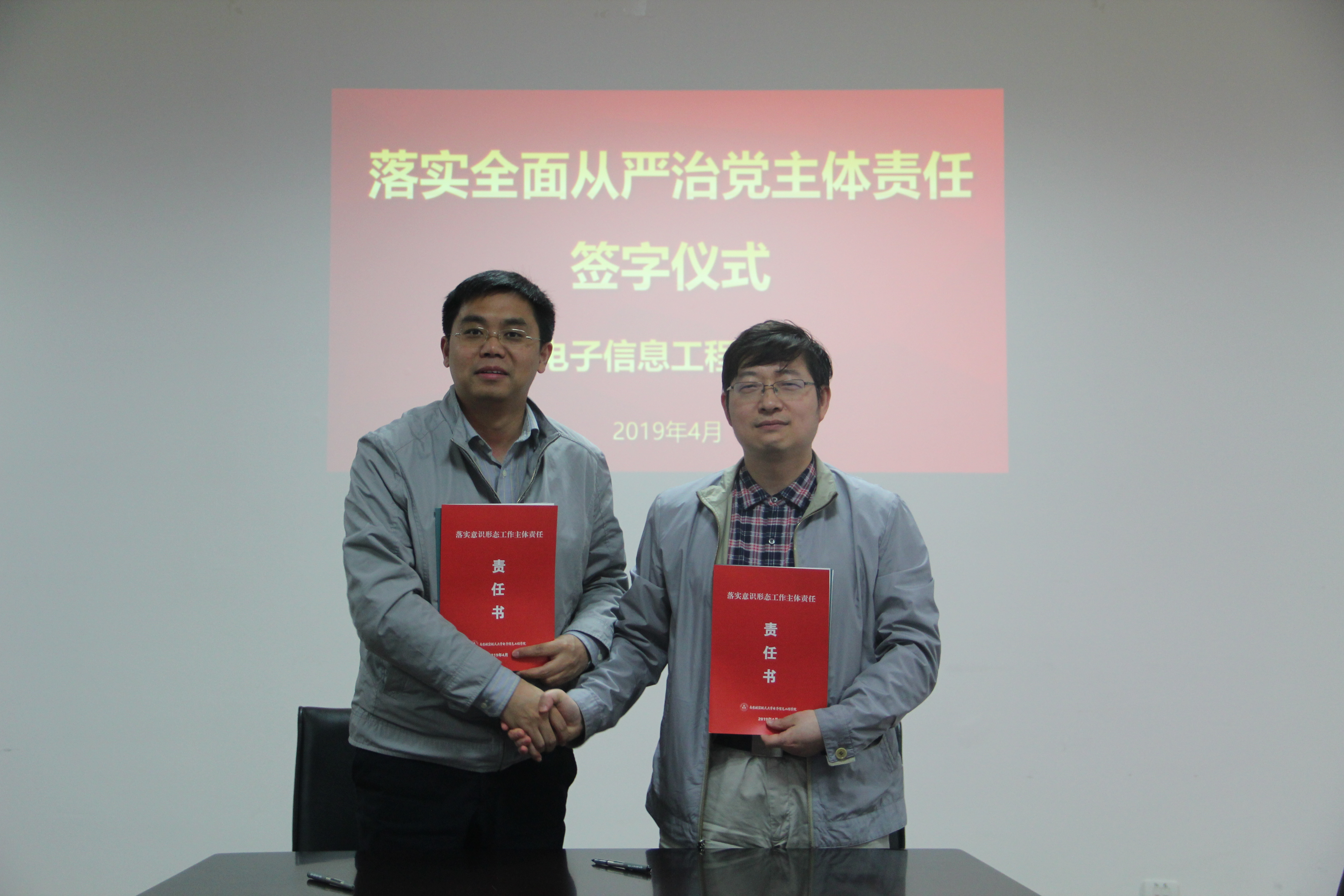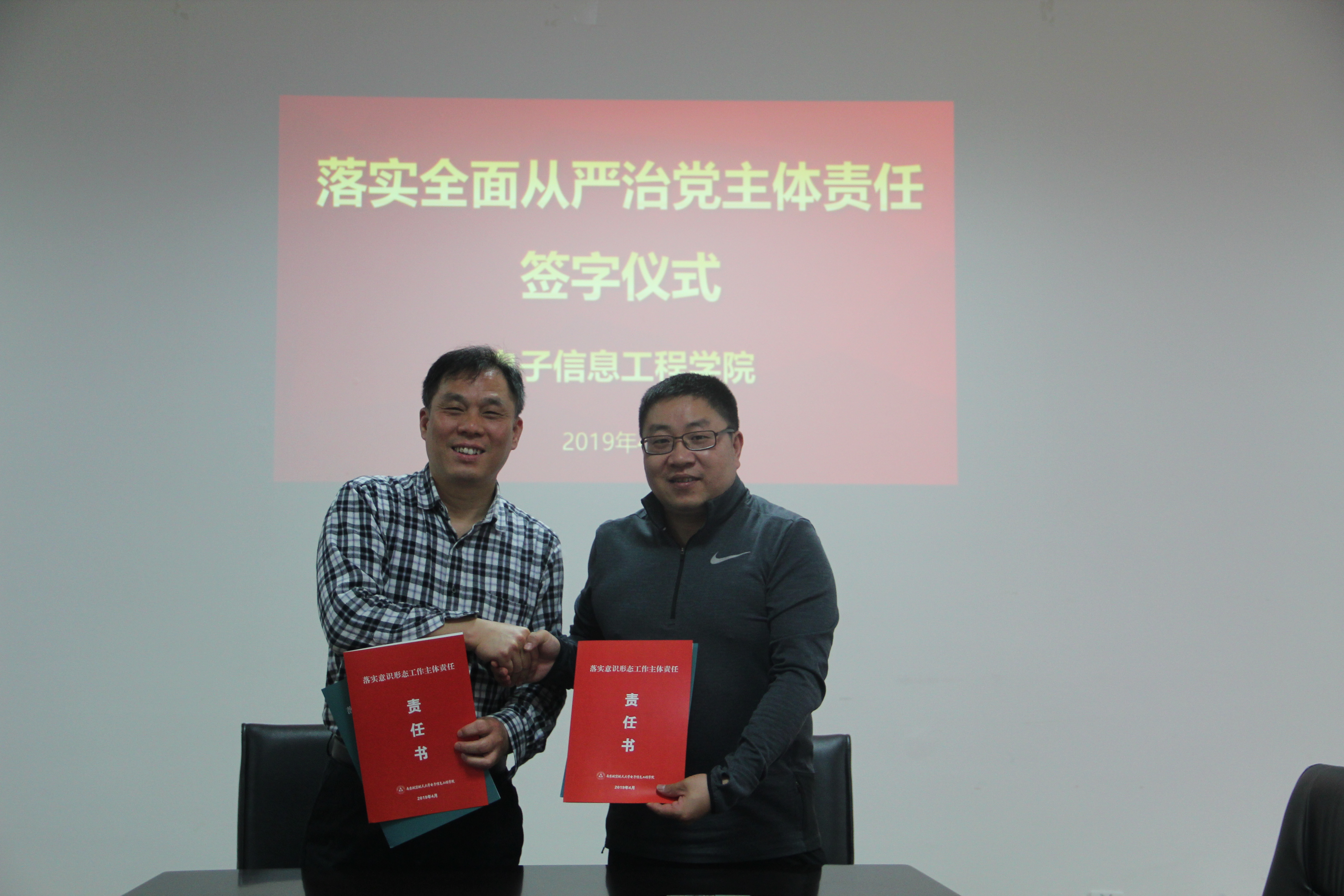 中心组学习会结束后,举行了落实全面从严治党主体责任责任书签订仪式。聂东林强调了新时期落实全面从严治党工作的重要意义,并对责任书的内容和要求作了说明。接着,学院党政领导班子分别与各自责任对象签订了工作责任书。