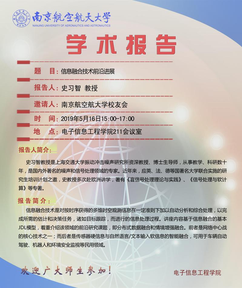 学术报告会——信息融合技术前沿进展