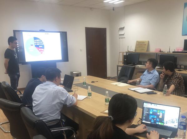 吴启晖院长首先介绍了学院组织学生参赛的基本情况,包括选题、项目创新性及研究进展等。丁琛书记详细介绍了学校备战挑战杯的总体安排和电子信息类项目的参赛情况。随后,“空中‘反黑’智能频谱监测系统”和”超高分辨率微波光子实时成像雷达”两个项目的负责同学分别从研究背景、研究过程、研究成果和应用展望等几个方面做了答辩汇报,吴启晖院长和丁琛书记从作品的创新性、科学性、应用性以及汇报技巧等几个方面对答辩的同学进行了全方面的指导,对两个项目的作品书和说明书提出了详细的修改意见,希望在接下来的省赛中,参赛的两只电子信息类作品能取得更好的成绩。