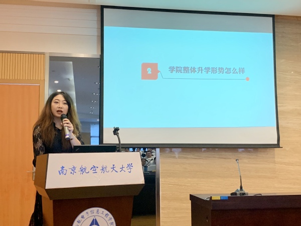 “升学动员指导会”主要分为四部分。第一部分是由学院2019届本科生辅导员张晓媛介绍近年来学院升学情况并就2019届本科生升学数据重点分析当下本科生升学形势与应对办法。