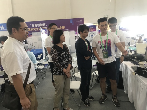 在总决赛阶段的现场展示和作品答辩,我院学生更是展示了南航人的风采,努力拼搏、脚踏实地,凭借着严谨治学的态度、积极创新的追求、昂扬向上的精神,同时将学校的荣誉扛在肩上,最终在中国研究生电子设计竞赛的舞台上斩获佳绩!答辩前夕,参赛队友们也不敢懈怠,他们不断模拟着答辩现场的场景。答辩当天,研究生院副院长王亚彤老师、研究生院张廷赟老师、指导老师葛芬老师也前往决赛现场,参观同学们的作品,为大家加油打气!