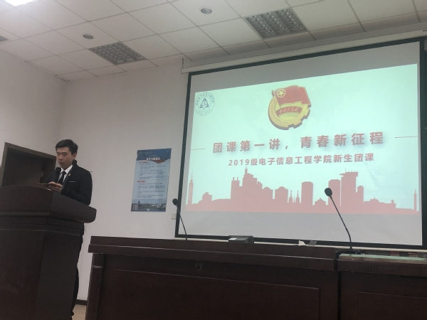 团歌激昂热烈的伴奏响起,全体起立合唱团歌,新生团课在《光荣啊,中国共青团》团歌中拉开了帷幕。徐艳惠老师从共青团知识问答、共青团概述、共青团品牌活动等方面进行讲述,增进了同学们对共青团知识的了解。