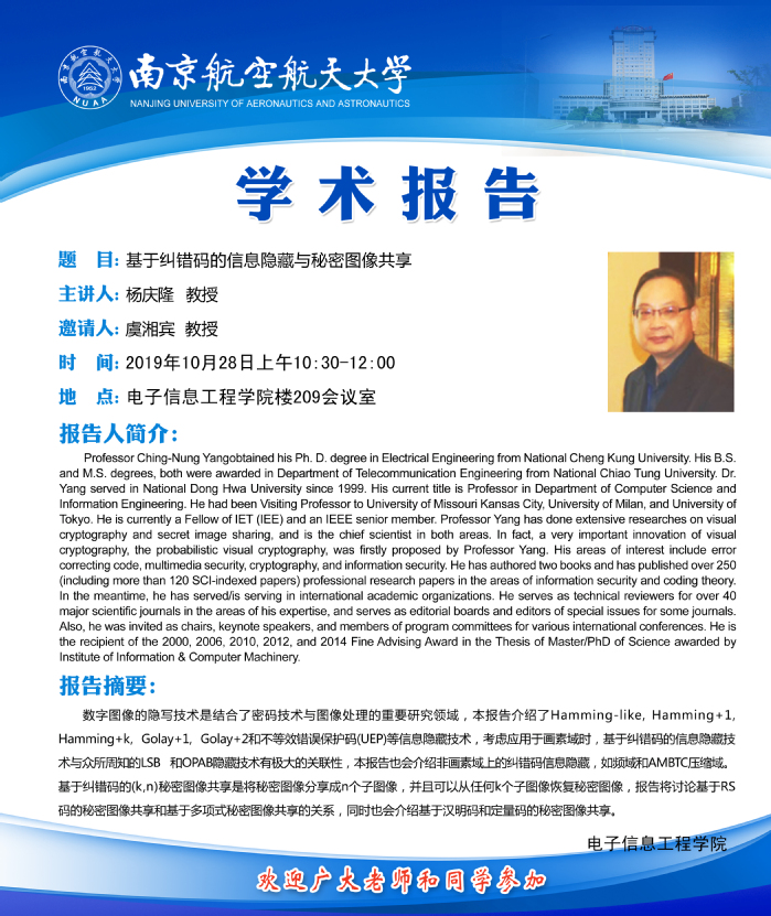 学术报告——基于纠错码的信息隐藏与秘密图像共享