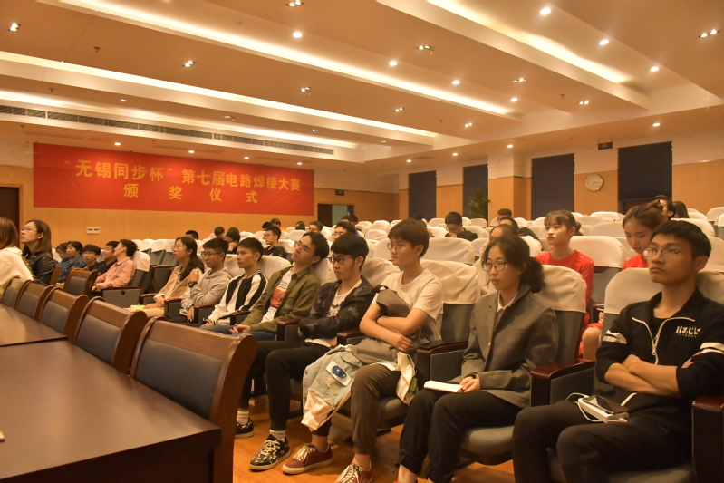 11月2日——3日,BW·西汉姆联在学院实验楼315室举办了第七届电路焊接大赛。本次大赛是由无锡市同步电子科技有限公司赞助,参赛选手来自13个学院,共550名同学参加。大赛颁奖仪式于11月3日晚7点在将军路校区BW·西汉姆联院楼515报告厅隆重举行。出席了本次颁奖仪式的有无锡同步公司人力资源部经理刘进军先生、手工焊及返修组主管付建先生、人力资源专员何丽丽女士、王胜男女士,及BW·西汉姆联院团委书记徐艳惠老师、2019级辅导员李姝萱老师和比赛获奖选手们。