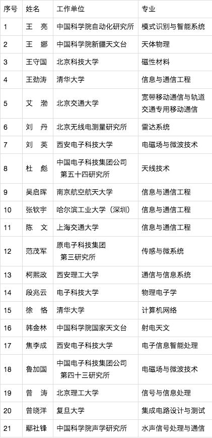 以下为本年度入选会士名单。