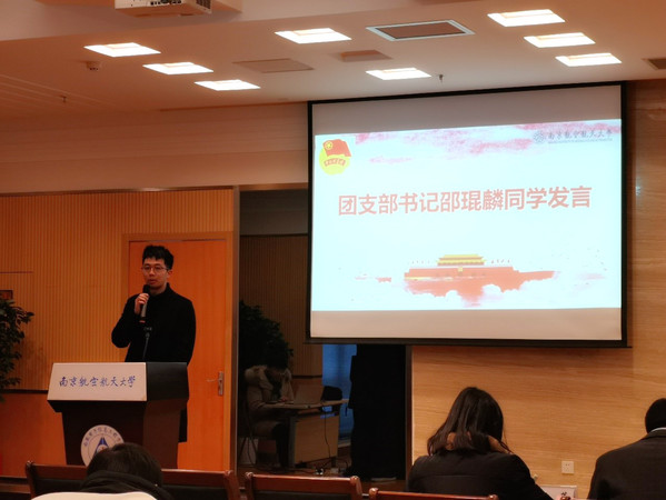 之后,团支部书记邵琨麟同学进行了发言,邵琨麟同学代表新一届团支部,对党组织和全体团员表示了感谢!邵同学说道:成为团支部的一员,能有机会为团的工作尽一份自己的力量,我们深感荣幸。同时,更感到是一种责任,微波光子学实验室研究生团支部有50多位团员,如何发挥每位团员的潜力,创造性地开展团的工作,我们任重道远。