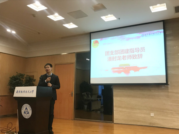 紧接着,团支部团建指导员潘时龙老师进行了致辞,潘时龙老师对校团委老师的到来和支持表示了感谢,指出这是学院也是学校第一个纵向团支部,希望团支部能将科研与团支部建设有机结合起来,实现以团建带科研,科研促团建的有效机制。同时潘老师强调要严肃支部纪律,要加强思想政治工作,把思想政治工作贯穿所开展的全部工作;带领实验室同学积极作为;团支部要抓好团员教育,不断提高团员素质,团支部要积极投身推进校风、学风和校园文化建设,争取为促进学院、学校精神文明建设及学风建设贡献一份力量。