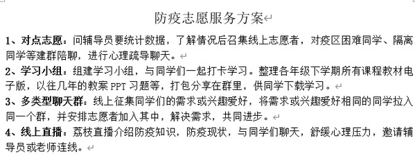 我院学生会和青协在此次疫情期间共同主导并制定了志愿活动方案,积极疏导同学们的心理,宣传防疫知识,并在线开展学 习小组,督促同学们的学习,使得我院学子学业抗疫两不误。