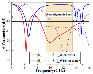 论文首次报道了一种利用水构建的温度可控的可重构频率选择吸波体。该频选吸波体在5.2GHz到7GHz频率范围保持透射,在8.3GHz至15.2GHz实现吸收和反射频带的可重构。此外,频选吸波体的吸收频带受到水温控制而发生变化,论文进一步由Mie谐振理论推导得到水作为特殊结构的谐振公式。相关吸波体的隐身效果得到我院微波光子实验室研制的微波光子雷达的实验验证。该频率选择吸波体设计方法在电磁隐身、雷达天线罩设计、电子对抗与反侦察领域具有较好的应用前景。