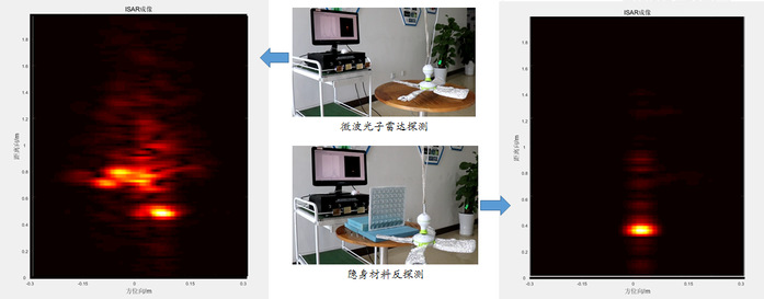 图3 微波光子雷达探测目标覆盖水基吸波体前后ISAR成像对比