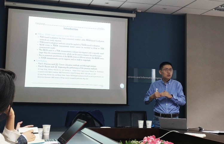 王刚教授首先介绍了抑制非视距误差影响对信号定位的重要性。接着,针对非视距环境下基于TDOA的定位问题,王教授对两种定位方法做了详细论述。第一种方法是在完全未知非视距误差信息和路径状态的条件下,提出了抑制非视距误差的稳健最小二乘定位方法。然而,该方法使用了过大的非视距误差上界,导致其在某些场景下的性能不能令人满意。为进一步提高定位性能,王教授提出了联合估计目标位置和参考路径非视距误差的方法。最后,王教授对TDOA定位的发展趋势进行了展望。