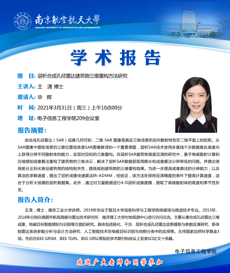 学术报告——层析合成孔径雷达建筑物三维重构方法研究