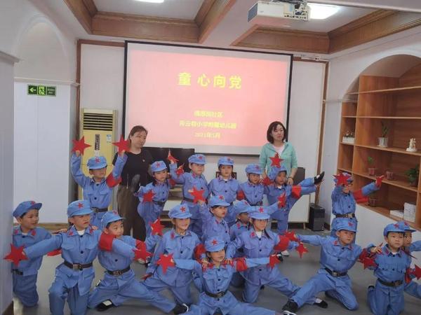 在正式开展活动前,小朋友们向0420005团支部的志愿者们展示了精心准备的节目——《红星闪闪》舞蹈表演。该节目以“童心向党”为主题,小朋友们身着军装,伴着激昂的歌曲声,有模有样地模仿军人敬礼、走正步,神采奕奕的小朋友们用真挚卖力的演出正展现军人的飒爽风采,也对0420005团支部志愿者们一行的教学活动表示欢迎。