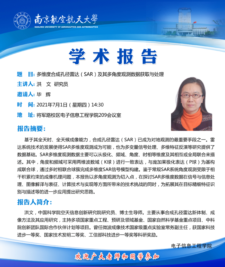 学术报告——多维度合成孔径雷达(SAR)及其多角度观测数据获取与处理