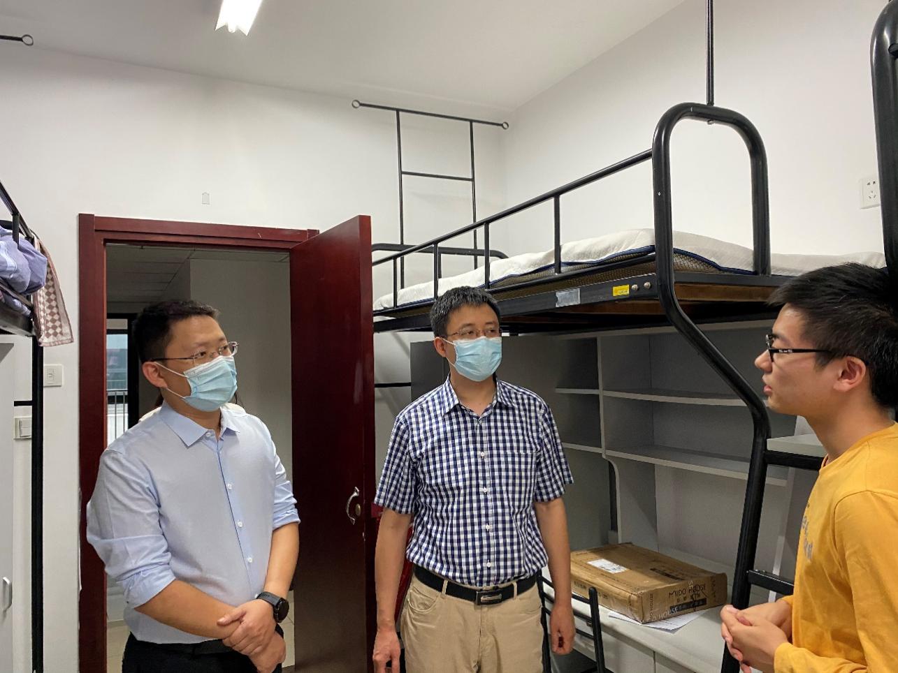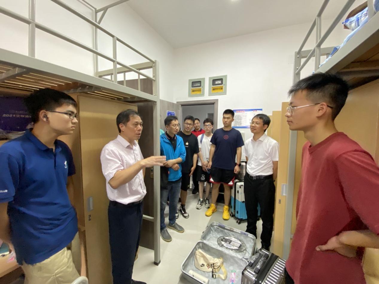 聂东林书记走访宿舍时对新生提出三点要求:一要刻苦学习,保持良好学习习惯,努力上进,为自己的未来奋力拼搏;二要和睦相处,和室友、同学要在学习生活上相互帮助,共同进步;三要提高整体素质,加强身体锻炼,创造更加丰富多彩的大学生活。